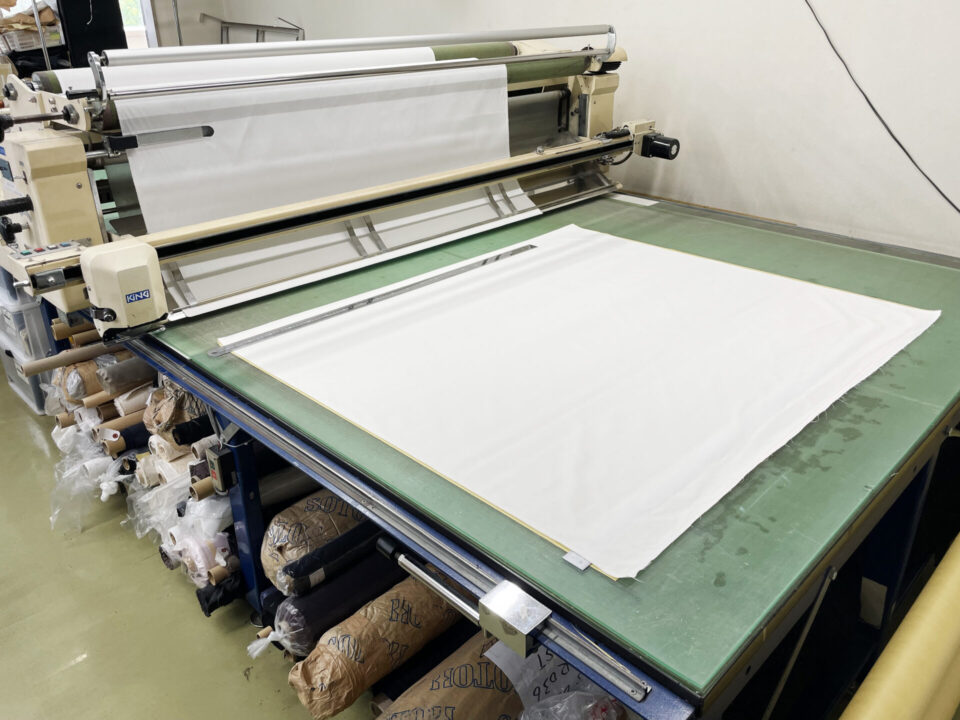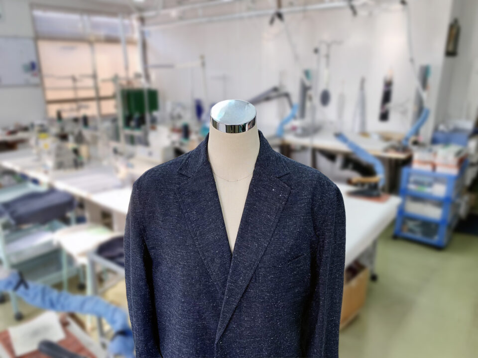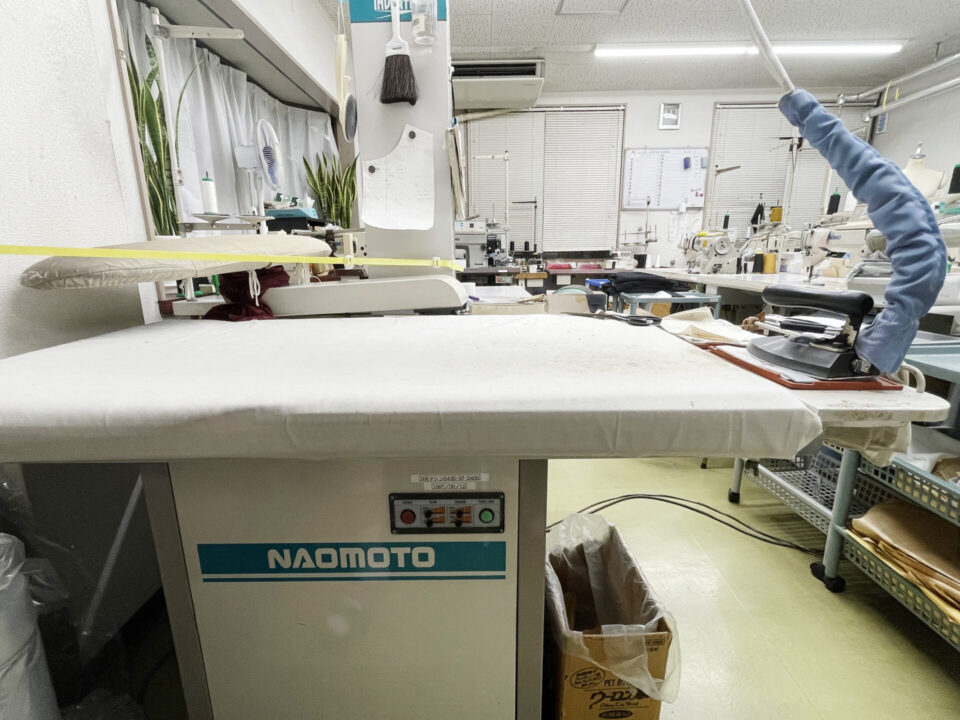 裁断から縫製、ボタンホール加工、仕上げプレスまで、工程はすべて社内で一貫して行っています。外注に頼らず、自社責任で丁寧に仕上げています。
