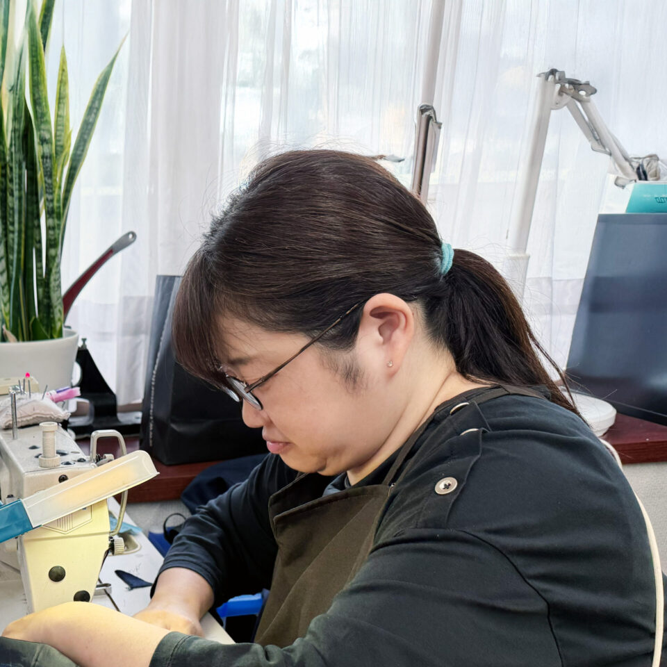 素材や仕様によって、ミシンのスピードや糸の調子、アイロンのかけ方を細かく調整します。生地ごとに「ちょうどいい加減」をつかむのは簡単ではなく、思うようにいかないこともあります。合皮のように針穴が残ってしまう素材はやり直しができないため、いつも少し緊張しながら縫っています。