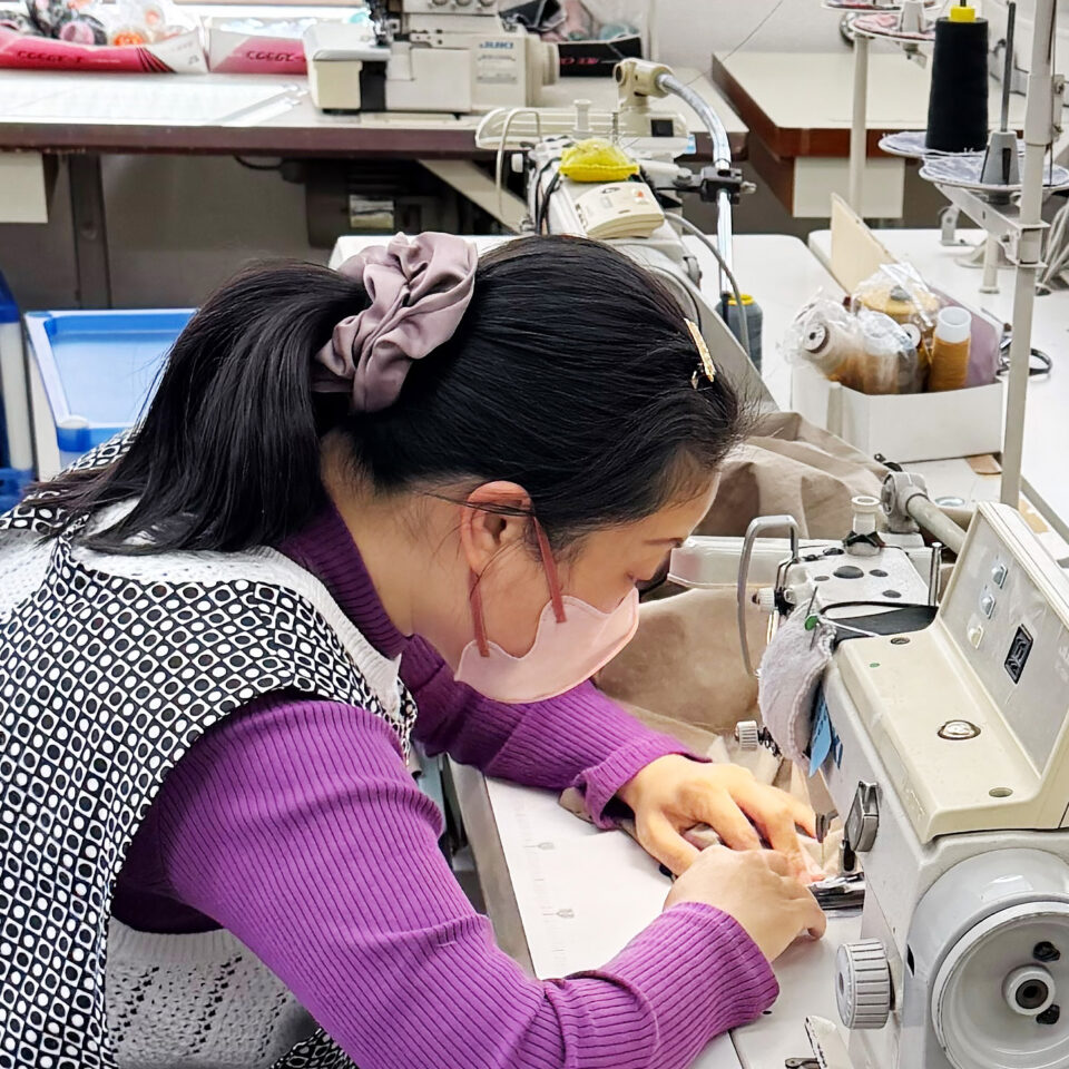 入社35年目高校卒業後、縫製会社に入社。最初の一年はアイロンで前工程を担当し、その後ミシンを任せてもらえるようになりました。以降は複数の職場で経験を重ね、布の扱い方や段取り、仕上げまで一通りを学びました。