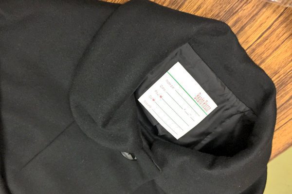 表生地とネームと釦だけはお願いして、裏地と接着芯はうちで用意、あと力釦をつけた方がいいと思って勝手に付けています。
