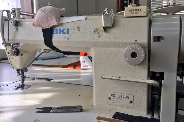 デルコップのハトメ穴かがりミシンは松ノ木縫製産地のミシンを中古で購入、渡辺ミシンさんがオーバーホールしてくれました。