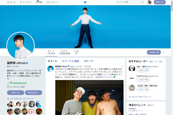 星野源のツイッターを見てたら伝えたいことが直ぐに伝えられるから便利だなって思ったし、見る方も手軽で簡単だからいいですよね。