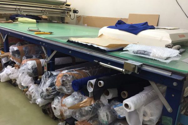 縫製工場必須アイテムの一つ幅広の裁断台と延反機