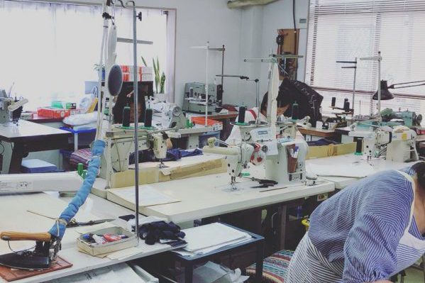 基本量産工場なので量産の場合4人の班で前工程から中間工程、組立工程、仕上げ工程と役割分担して1着の洋服を作ります。