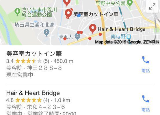 「広告」って書いてあるでしょ。そこはクリックしないで下にスクロールして最初に独自ドメインアドレスの美容院を最初にクリックするといいと思うよ。それかグーグルマップ表示されるお店ね。