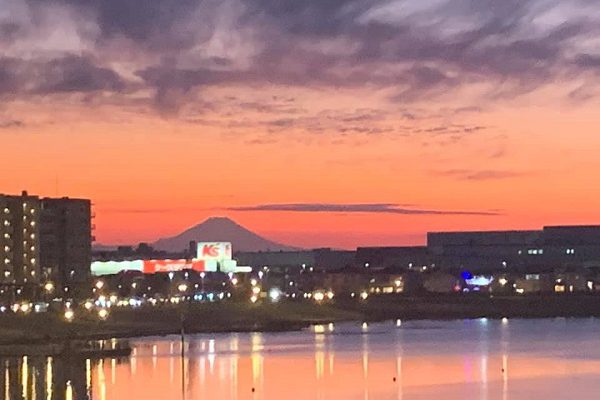 うおー埼玉県からきれいな夕焼けに染まる富士山が見えたよー!