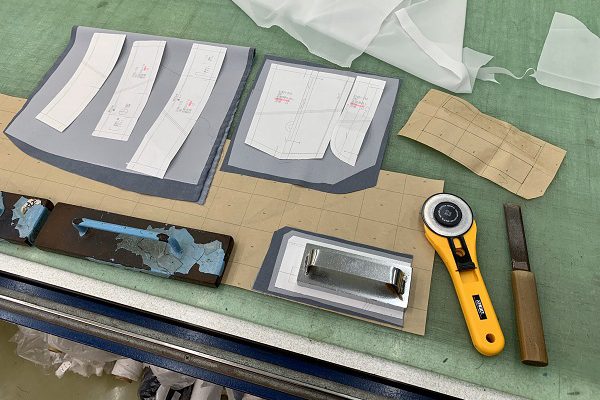 生地を切ることを裁断とよんでいます。裁断する人を裁断マンと呼んでいます。