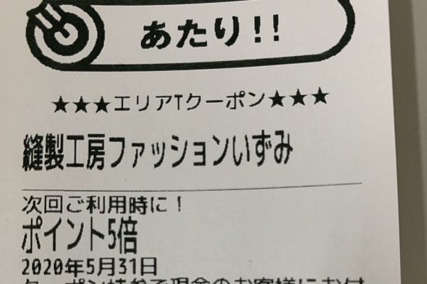 ファッションいずみで洋服のお直し・ボタンホールをご利用で今ならTポイント5倍クーポン券が当たります。(2月29日まで)