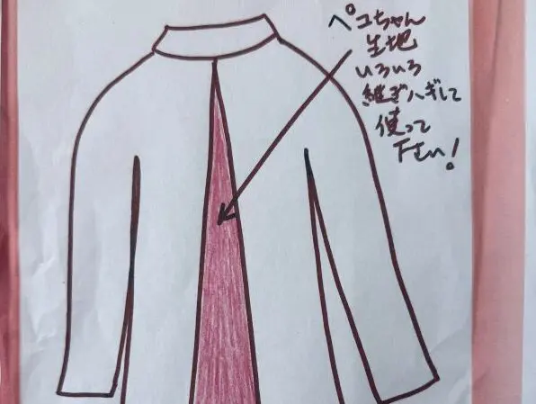LINEを使って直したい洋服の写真を全体・部分・更に寄りで3枚送ってください。リメイクの場合はイメージ画を描いてもらえるとお見積りを出しやすいです。