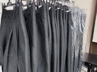 今年最後は左右に3本タックが入ったパンツを納品しました。