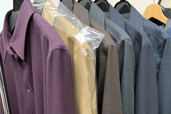 すべすべするウールでぱっと見普通のシャツなんだけど袖が2枚袖(外袖と内袖でパターンが分かれてる、普通シャツは1枚袖)だから腕に沿う様になってて着心地がいい。あと30番手の太めの糸でかけたステッチがシャレオツなので是非羽織って欲しいのができました。デッドストックの生地で作ったからこれだけみたい。定番シャツのこんな企画いいですね。