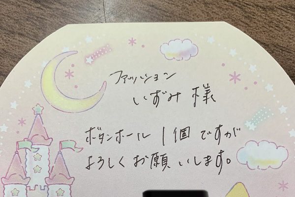 今日も神戸からボタンホールを開けて下さいと届いた洋服と一緒に入っていたレターパックで送ります。中には手書きの御礼状を書いて入れます支払いはキャッシュレス決済でした。